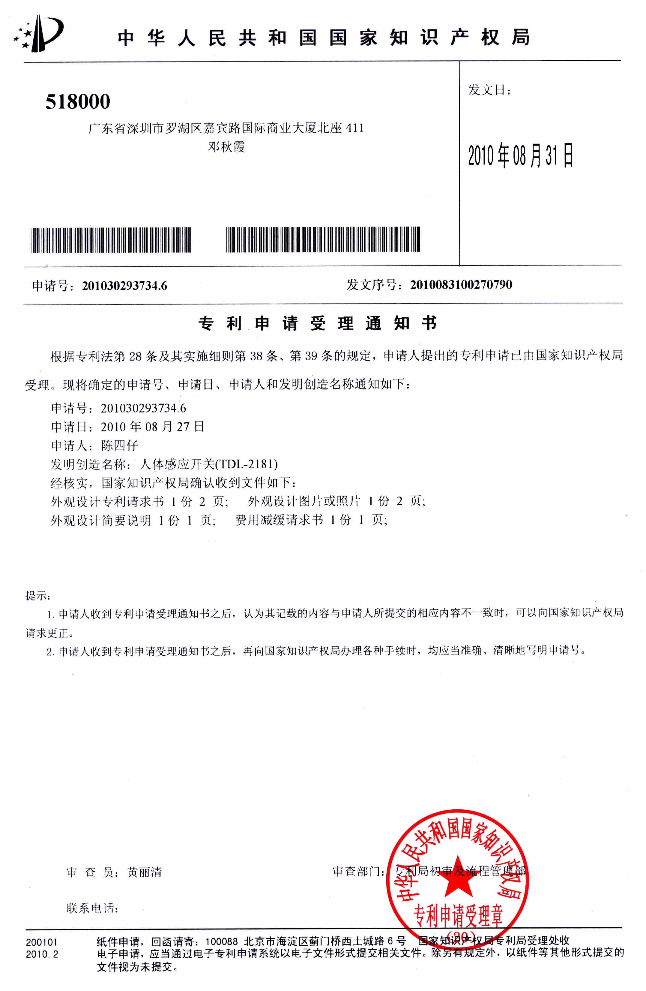 Patent Certificate->design patent